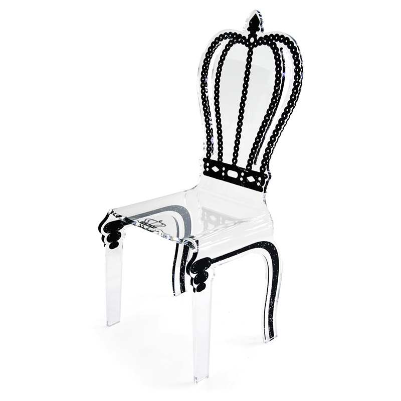 分厚いアクリルをチェアのシルエットでカットし、高度な技術で大胆に曲げて製作された家具シリーズです。