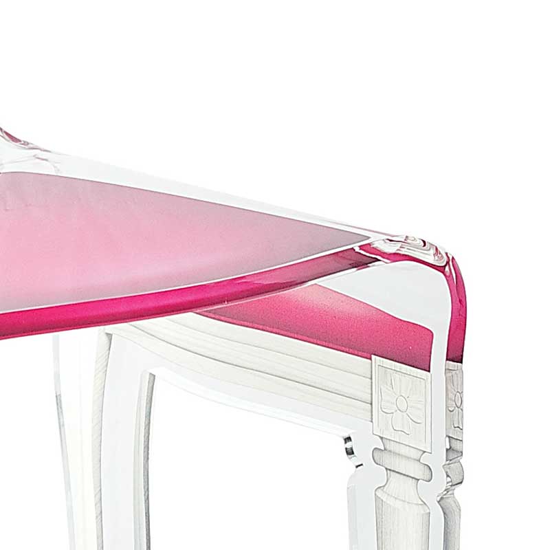 分厚いアクリルをチェアのシルエットでカットし、高度な技術で大胆に曲げて製作された家具シリーズです。