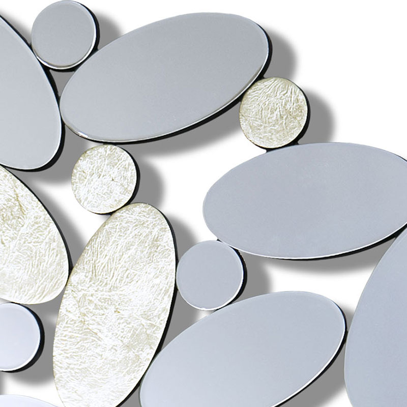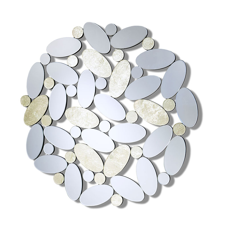 丸と楕円を組み合わせたユニークなミラー。ところどころに散りばめられたゴールドが豪華さを演出します。