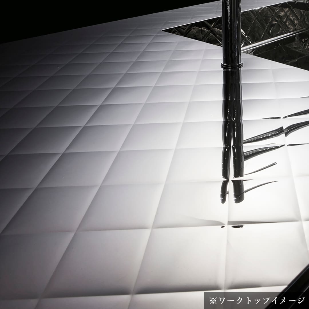 ステンレスにデザインを施した新感覚ワークトップ。美しいだけでなく、特殊なプレスパターンによって傷がつきにくく目立ちにくいため、永く美しく使い続けられます。