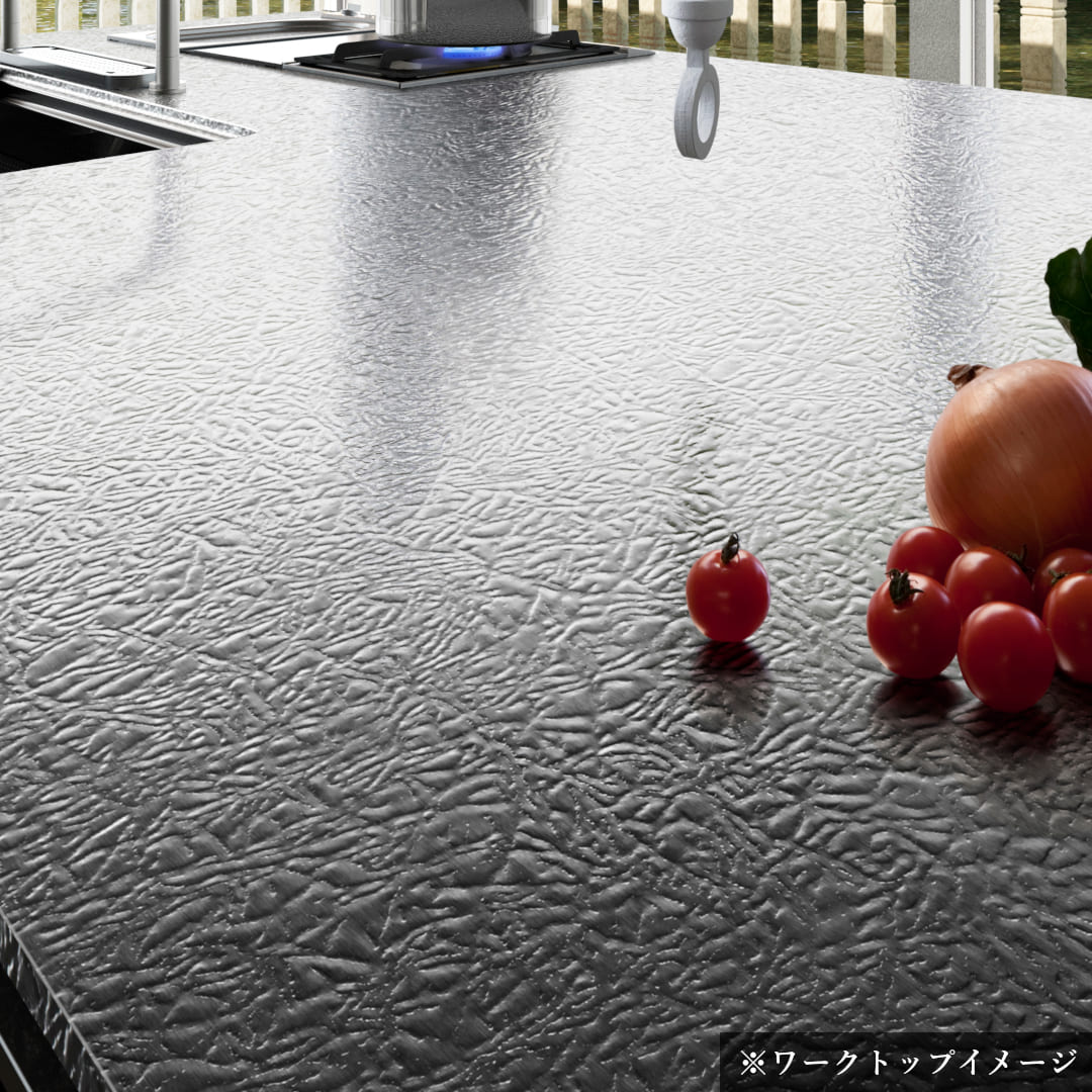 ステンレスにデザインを施した新感覚ワークトップ。美しいだけでなく、特殊なプレスパターンによって傷がつきにくく目立ちにくいため、永く美しく使い続けられます。