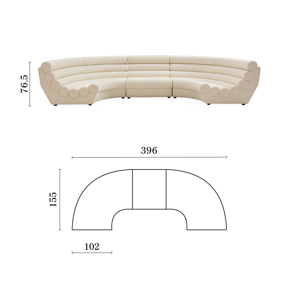 サイズ:幅約396 cm × 奥行約155 cm × 高さ約76.5 cm