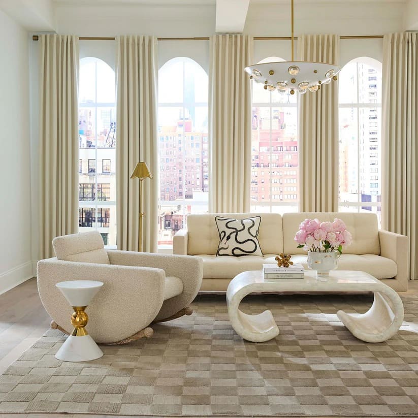 ジョナサン・アドラーが手がけたルナ ロッキング チェアは、やさしい揺れと彫刻的なデザインを一脚に凝縮した、存在感のある家具です。
