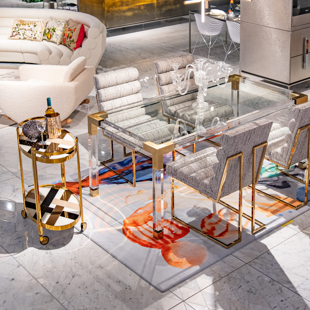 金色のグラスやデカンタ(瓶)を並べれば、ニューヨーク仕込みの「モダン・アメリカン。グラマー」が部屋に宿ります。