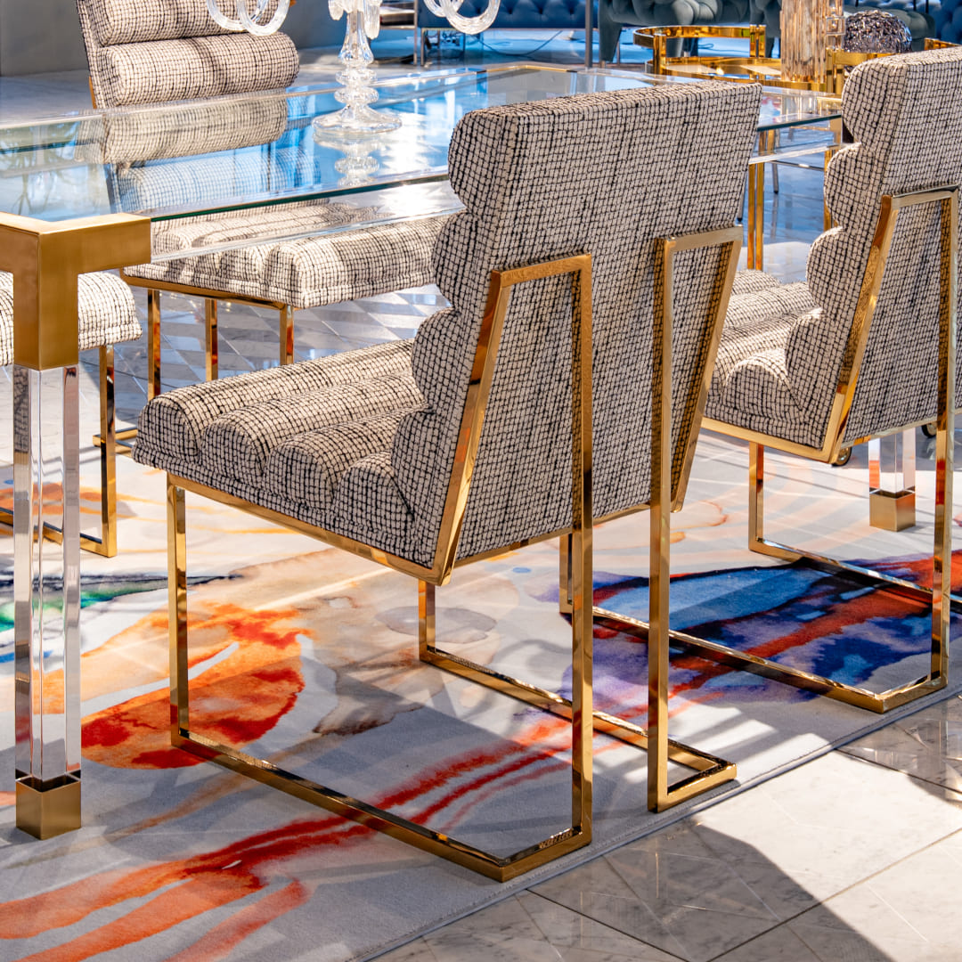 チャネルドゴールドフィンガー ダイニングチェアが属するゴールドフィンガーコレクションは、ジョナサン アドラーのなかでも長く支持されてきた定番シリーズです。