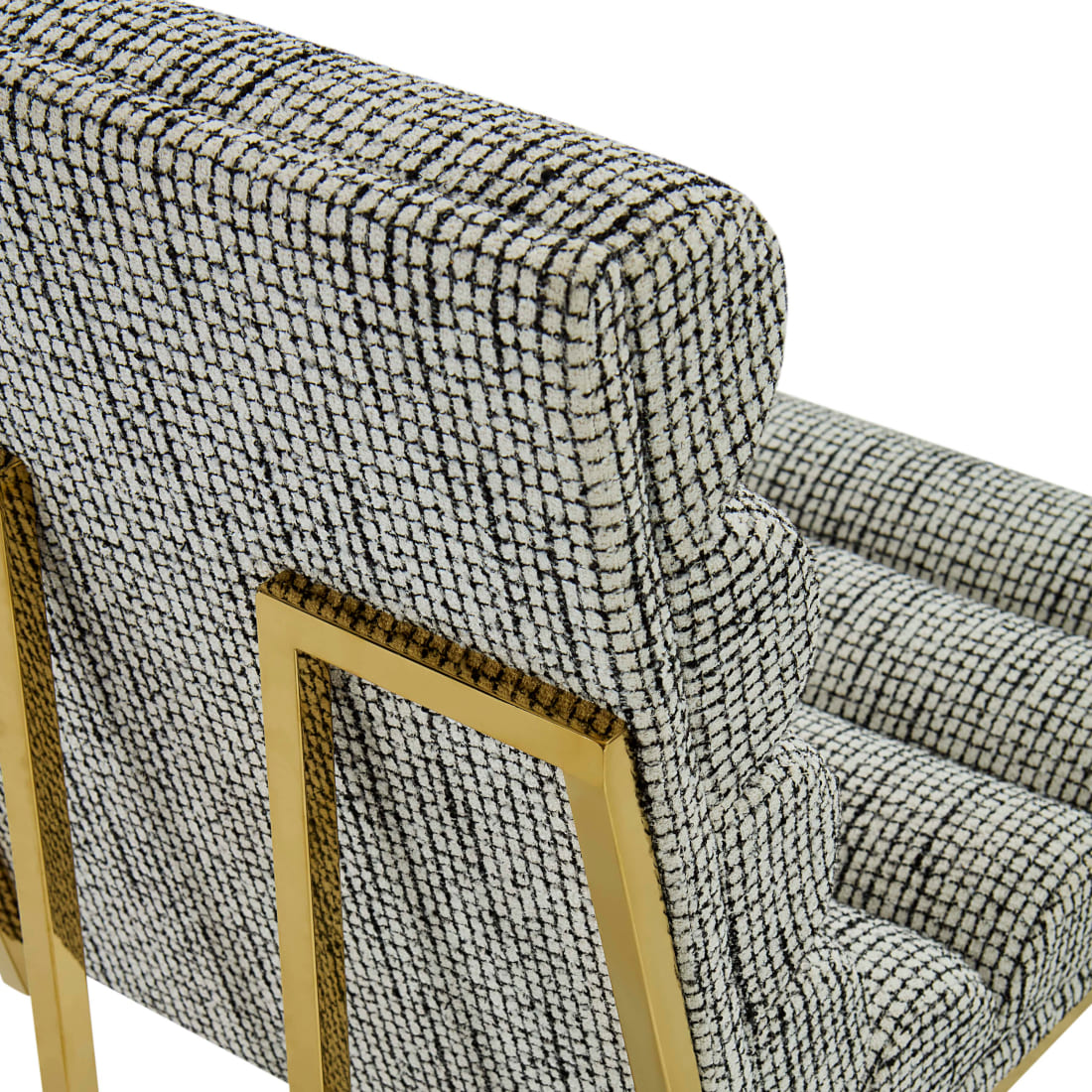 クロスハッチ ブラック&ホワイトの張り地は、無数の経糸・緯糸が交差して生まれるテクスチャードウーブン。