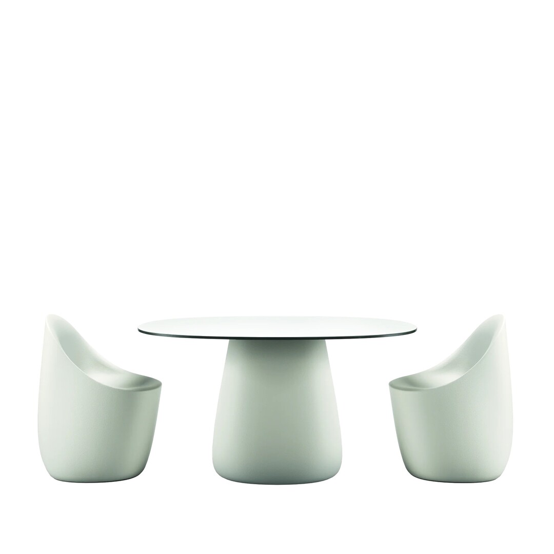 リサイクル可能なポリエチレン製のベース・チェアと、HPLまたはグレス ストーンウェアの天板により、耐候性と上質感を両立しています。