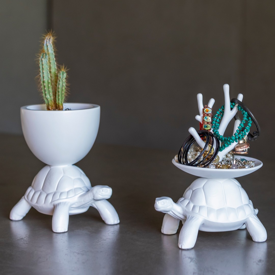 大型モデルとは異なる繊細な質感を持ち、甲羅の上にジュエリーツリー・小物置きトレー・ミニプランターをそれぞれ乗せた3種を展開。