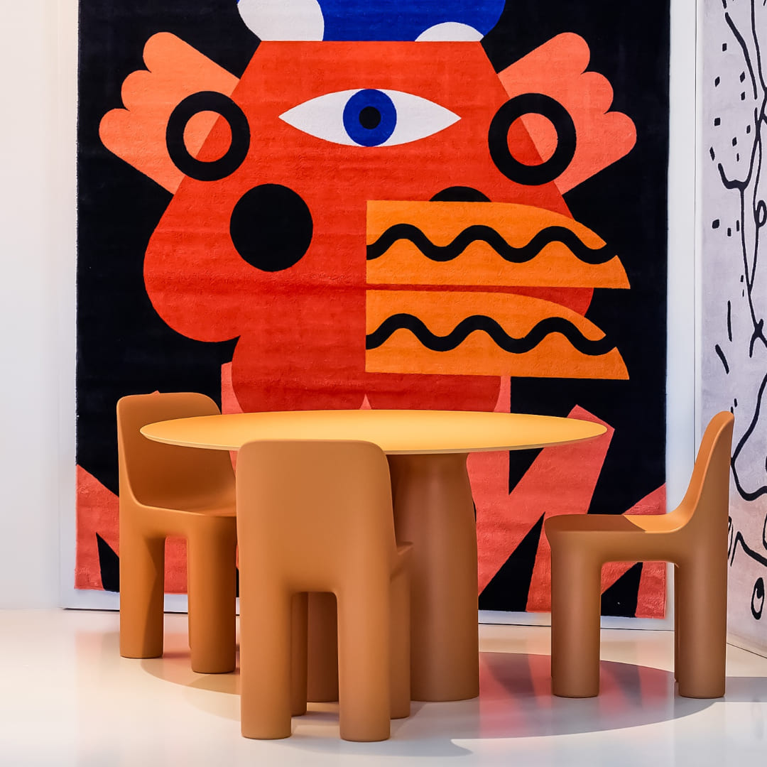 自らが創設したキーブーにおいては、ラビットチェアやキャットケイヴのようなポップでキャラクター性の強いプロダクトを中心に展開してきましたが、トト&タタはジョバンノーニがキーブーとして初めてテーブルと椅子に正面から向き合ったコレクションです。