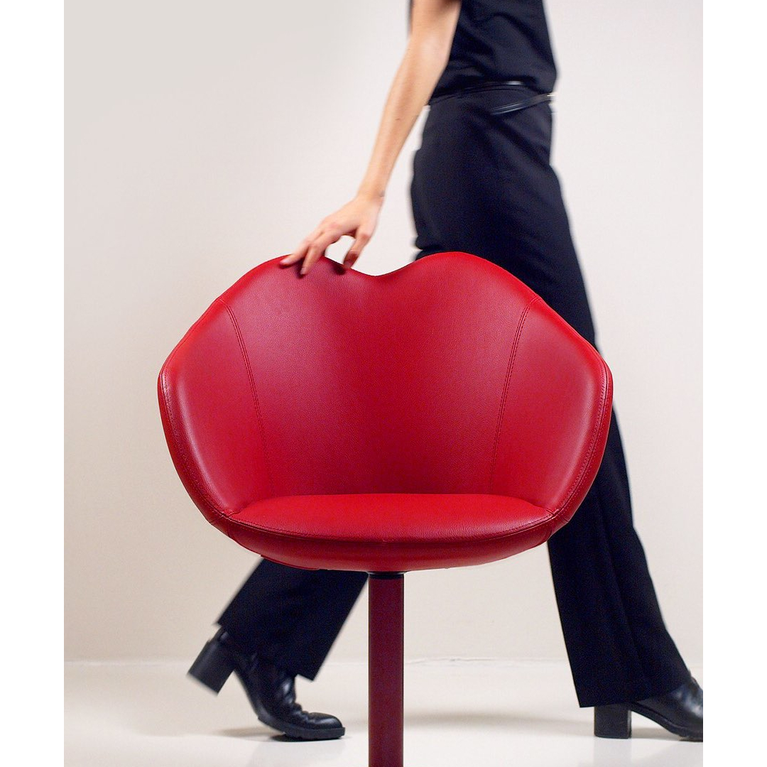 キーブーのキスハグ チェアは、ニカ・ズパンクが「唇」というシンボルの本質を一本の曲線に落とし込んだ、彫刻的なデザインチェアです。