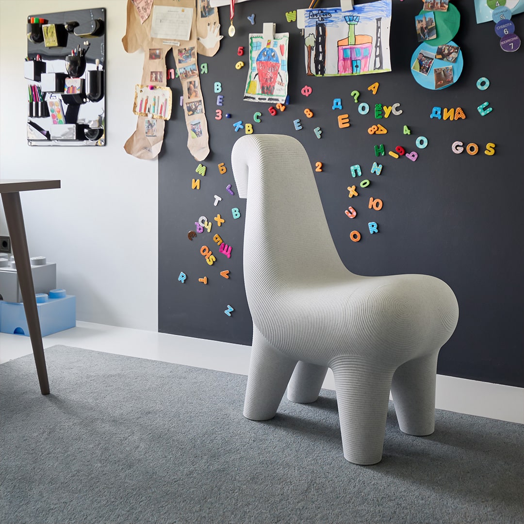 キーブーによる工業化により、その質感と有機的なかたちはリサイクル可能なポリエチレンで量産モデルとして再現されました。