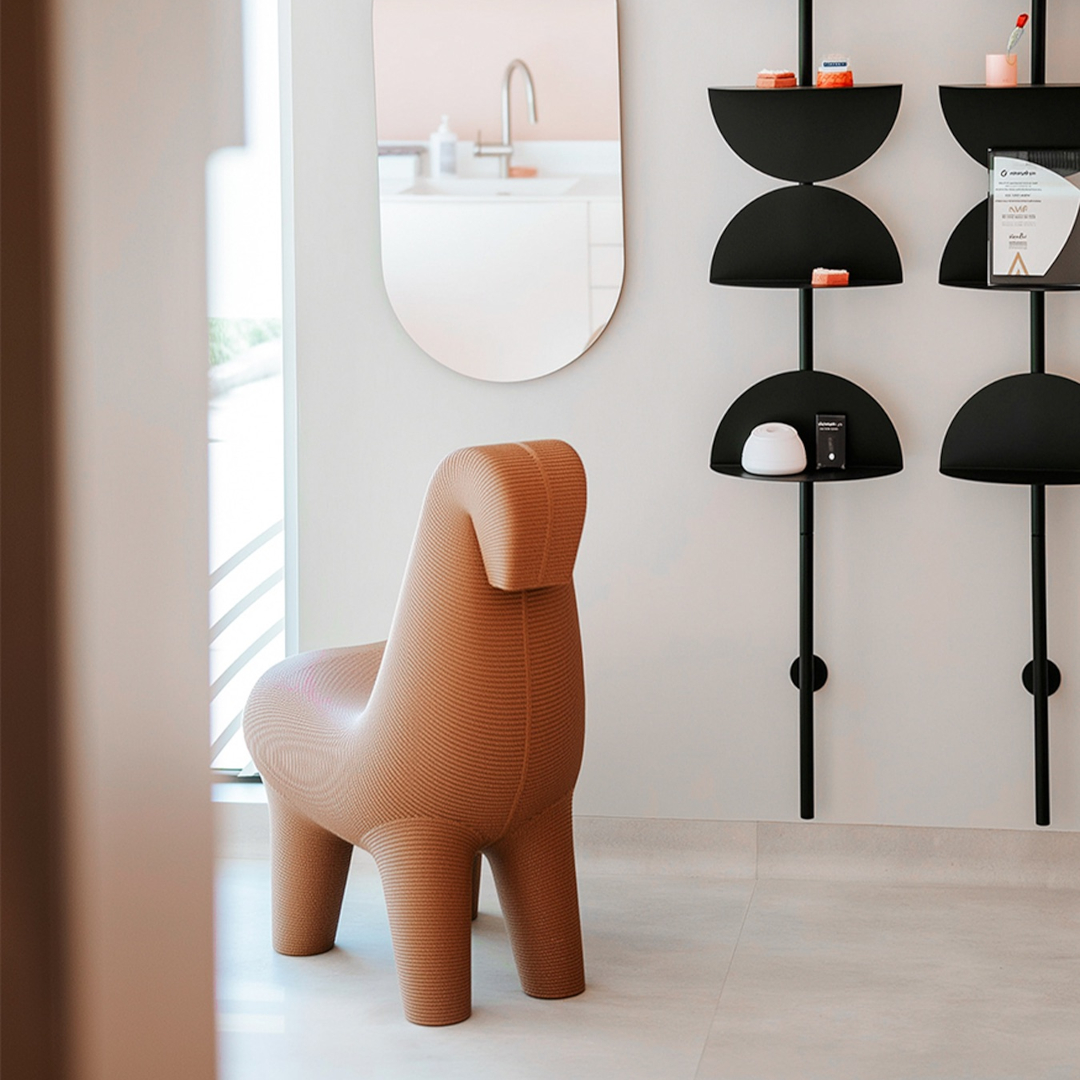 座面高45cmと実用的な設計を確保しながら、そのかたちは機能を超えた物語を語ります。