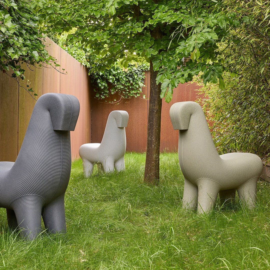 デザイナー・サチェンドラ・パクハレが2000年から取り組んだブロンズ彫刻「B.M.ホース」を原点に、独自の「スパゲッティ・ロストワックス鋳造法」が生み出した有機的なラインを、キーブーがポリエチレン製の工業製品として再現しました。