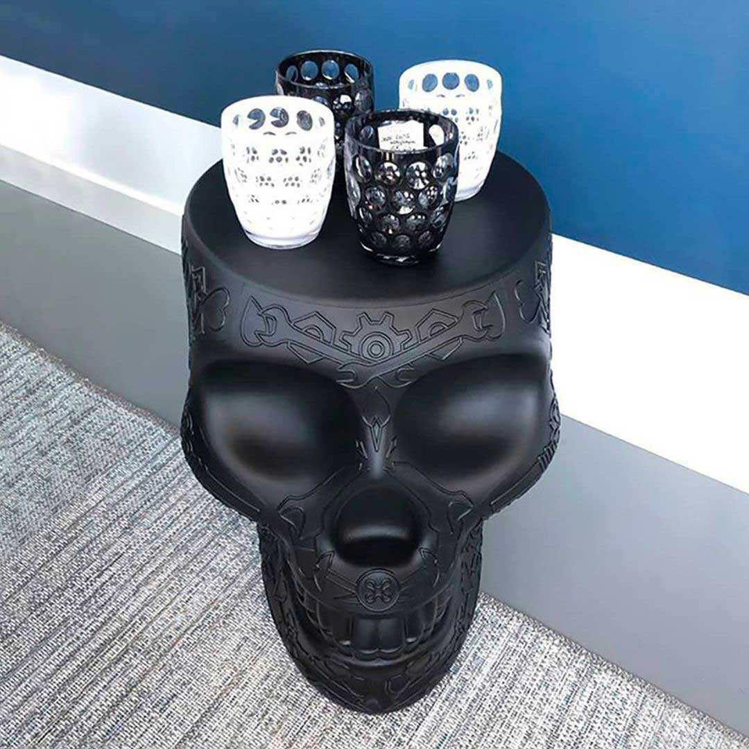 ソファサイドや読書コーナーに一脚。ドクロのシルエットは上から見ると単純なオブジェに見えますが、横から見た瞬間に物語が始まります。