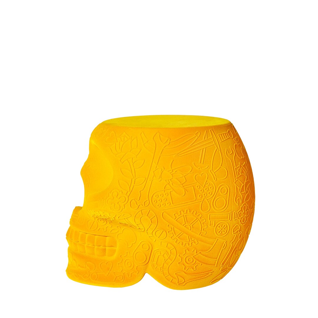 ソファサイドや読書コーナーに一脚。ドクロのシルエットは上から見ると単純なオブジェに見えますが、横から見た瞬間に物語が始まります。