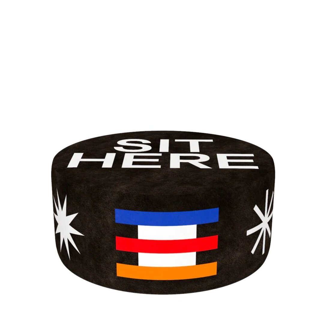 「シット ヒア」の文字が入ったシリーズは、来客時の会話の糸口になるアイスブレーカーとしても。