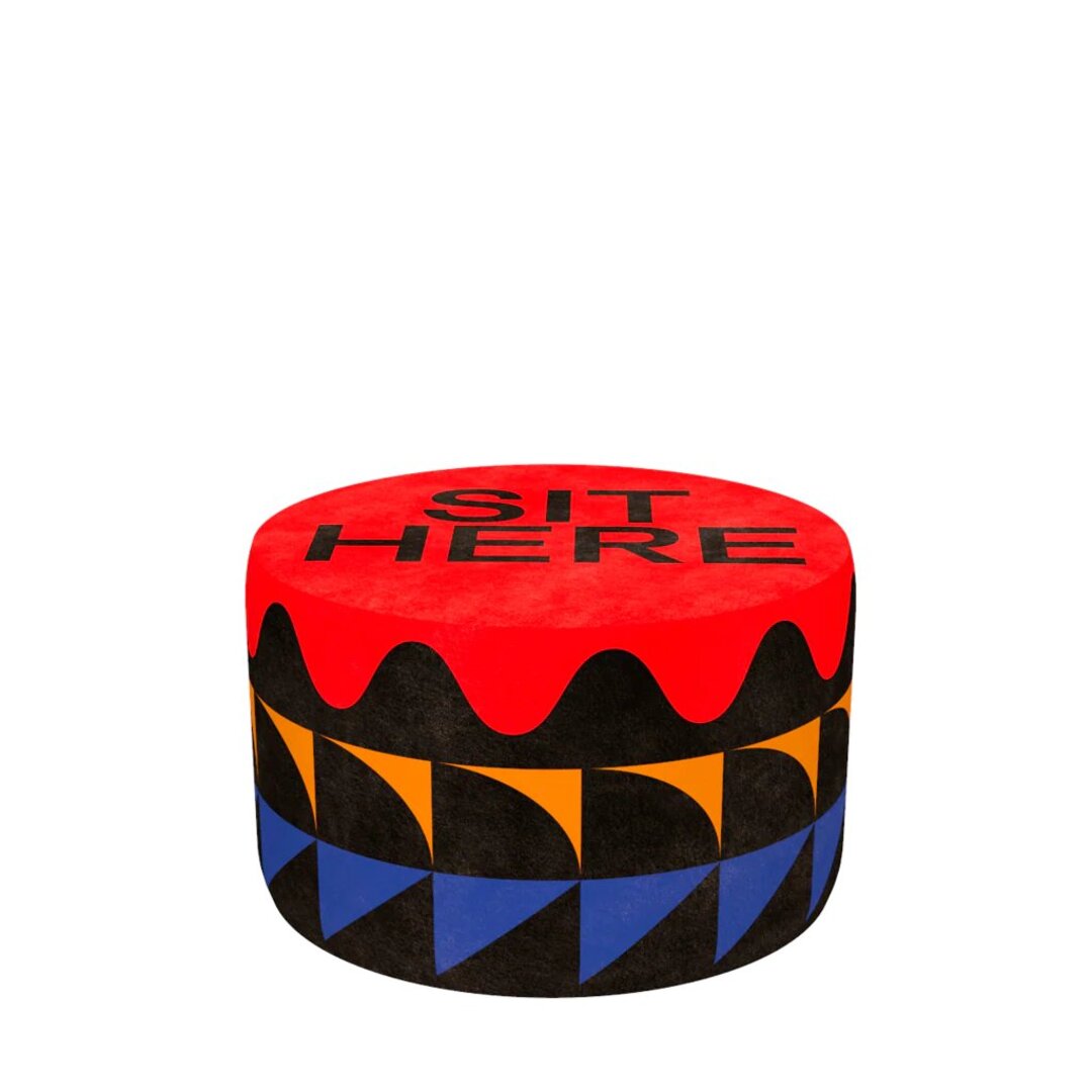 「シット ヒア」の文字が入ったシリーズは、来客時の会話の糸口になるアイスブレーカーとしても。