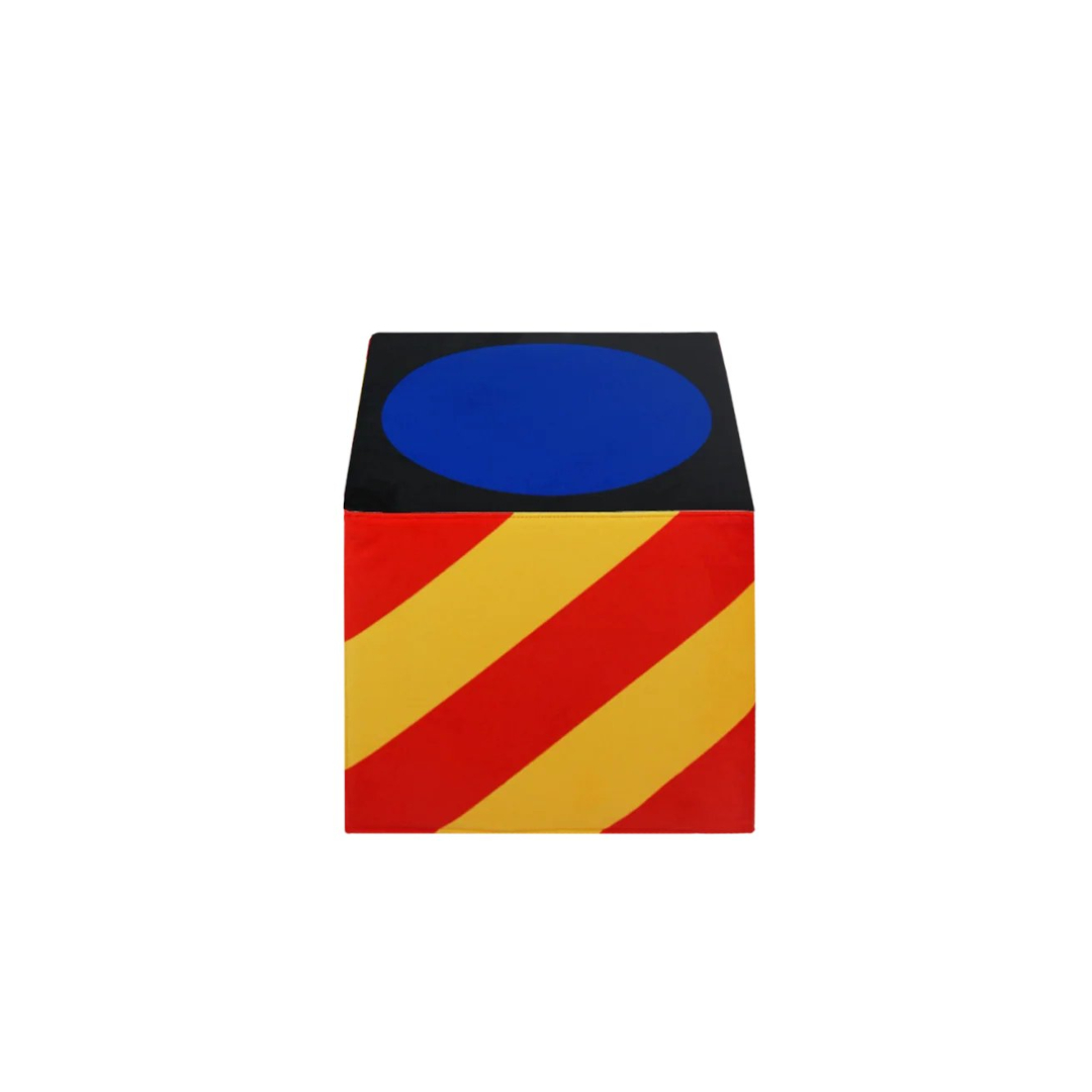 カラフルなストライプがそれぞれの面に施されています。132×44×44cmの大型プフ。モジュール設計で複数の組み合わせに対応し、さまざまなシーンに馴染みます。