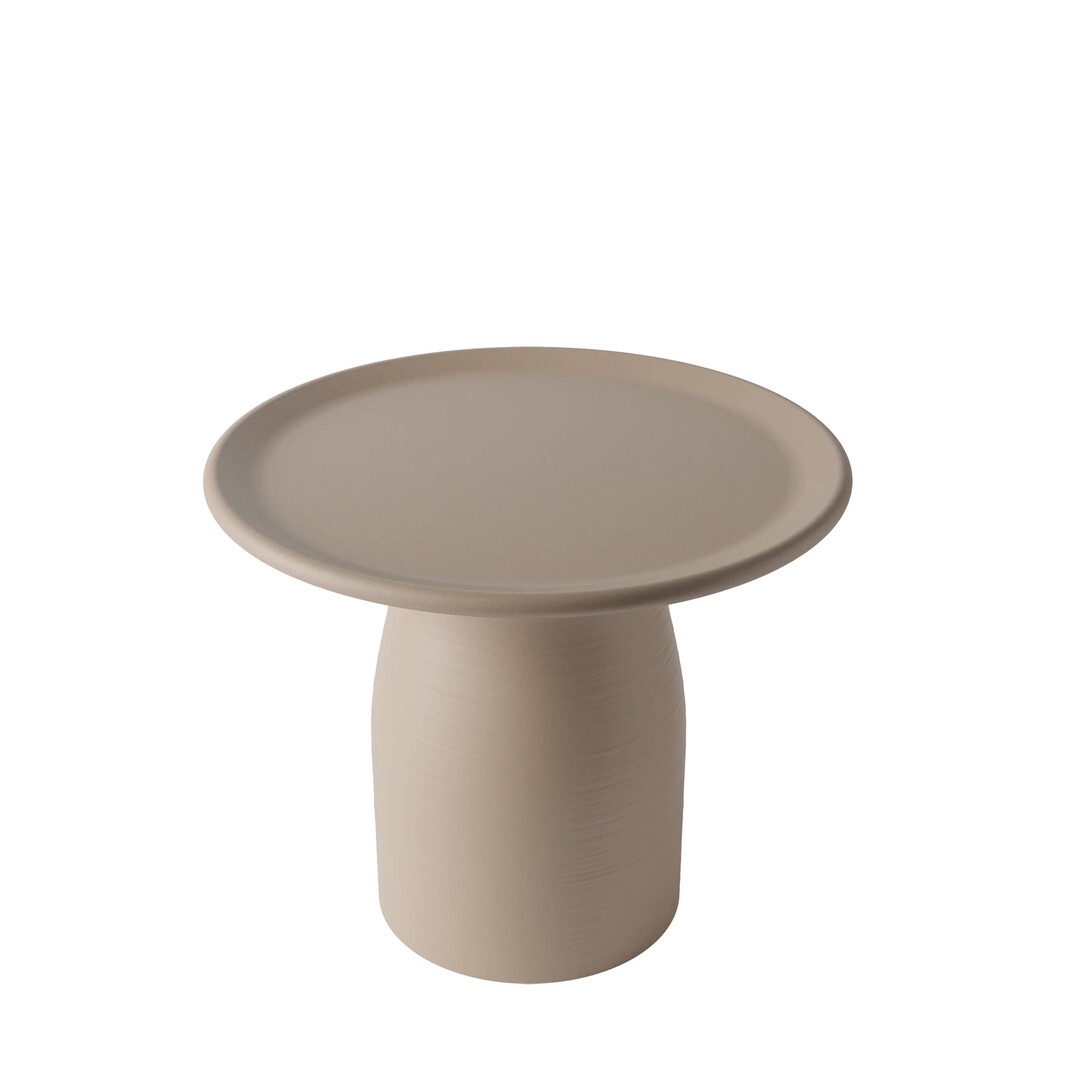 柱型のポリエチレンベースに4種の天板素材と複数のサイズを組み合わせる設計が最大の特徴です。