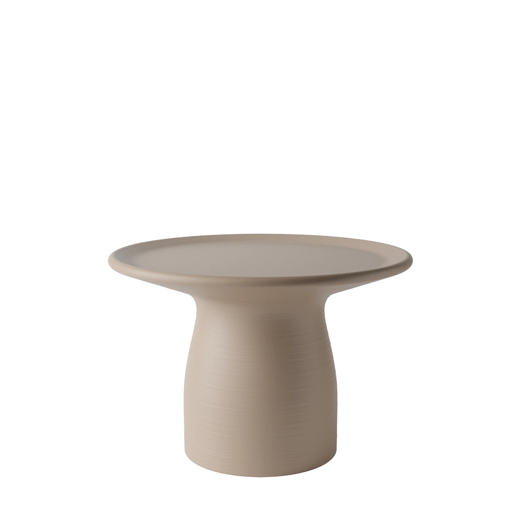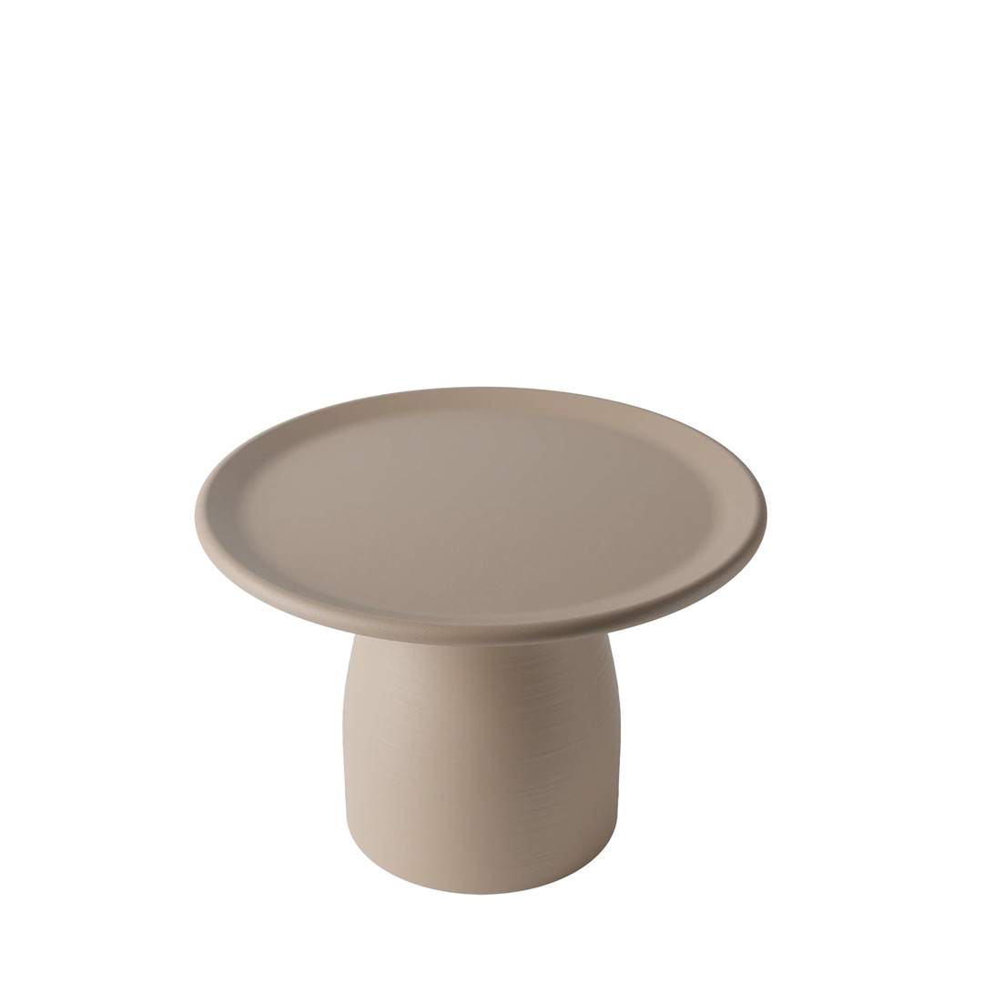 柱型のポリエチレンベースに4種の天板素材と複数のサイズを組み合わせる設計が最大の特徴です。