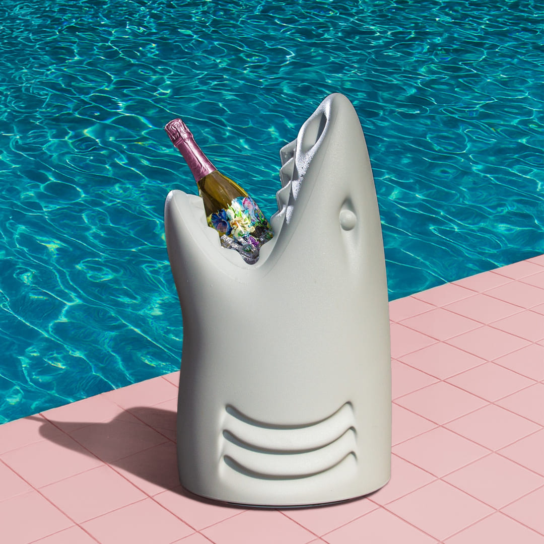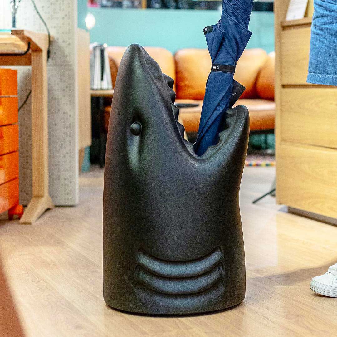 傘立てとして、ゴミ箱として、シャンパンクーラーとして──このサメは、使い方を問いません。