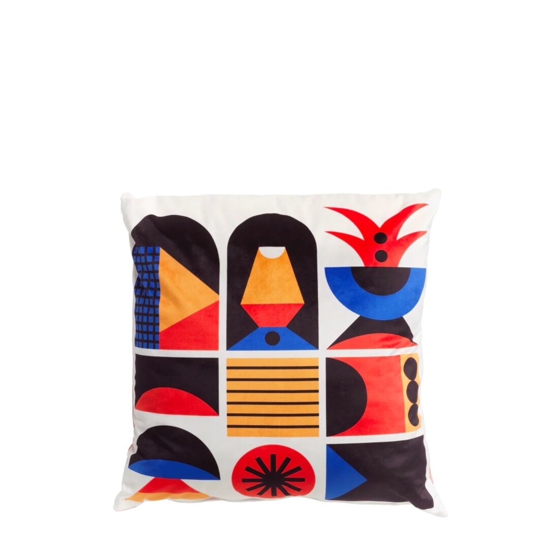 正方形45cmのクッションに、オッジャンのグラフィックが全面にプリントされています。