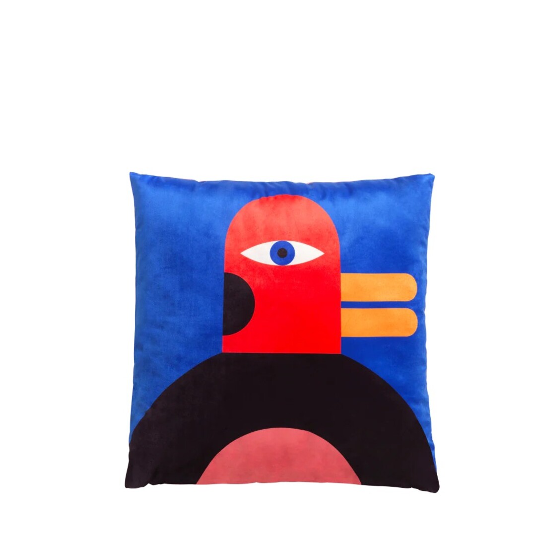 正方形45cmのクッションに、オッジャンのグラフィックが全面にプリントされています。