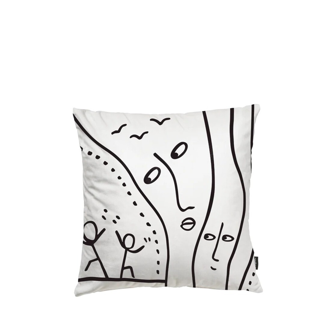 安らぎの場所をテーマにした穏やかなデザイン。黒地。ソファに無造作に置いても絵になります。