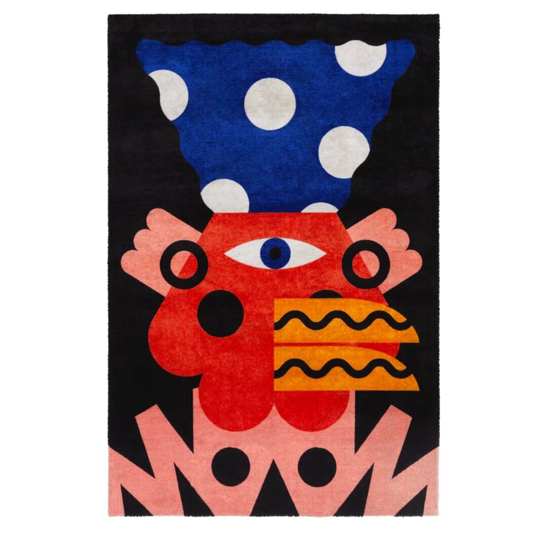 フラワーベース、キャンドルスティック、プフ、クッション、カーペット、コーヒーテーブル、ウォールクロックの全7カテゴリにわたり、いずれの作品にもオッジャン独自の「大胆な原色×ユーモアある幾何学形×社会的メッセージ」というデザイン哲学が貫かれています。