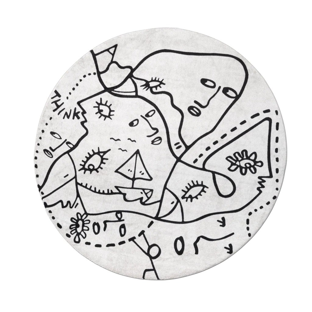 フリードローイングが描く線が丸いカーペットをところ狭しと駆け巡ります。子ども部屋やプレイスペースにもよく似合います。