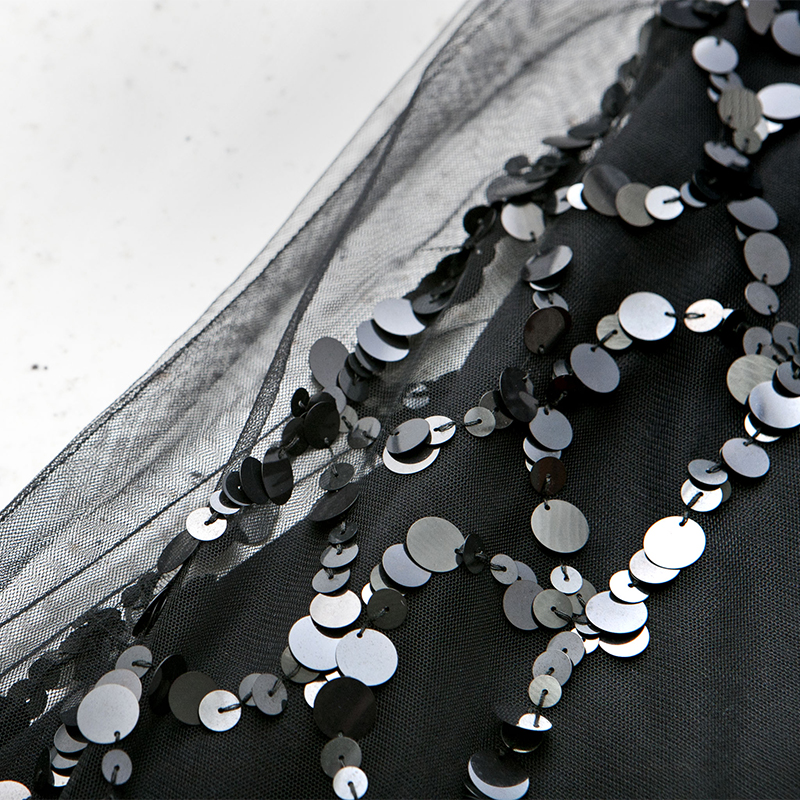 全身にスパンコールでちりばめられたワンピースです。スパンコールは職人の手仕事によるハンドメイド。インナーはタンクトップがセットになっており様々な着こなしのアレンジも可能です。