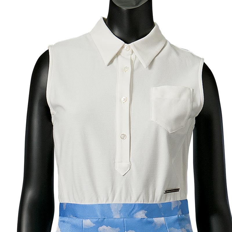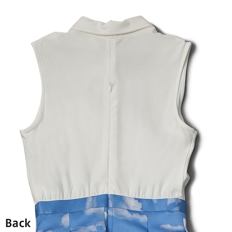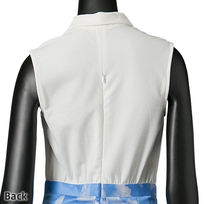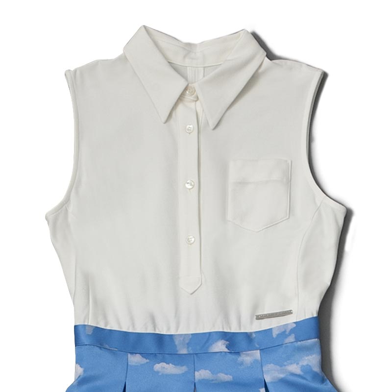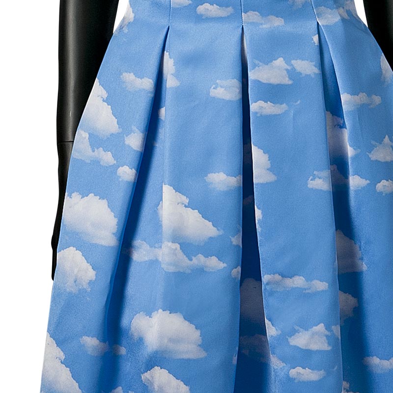 今シーズンのテーマである海辺のバカンスを思わせる1着です。コートダジュールの碧い空を切り取って雲の上にいるような気分にさせてくれる1着です。スカート部分はバルーンシルエットになっておりボリューム感が特長です。