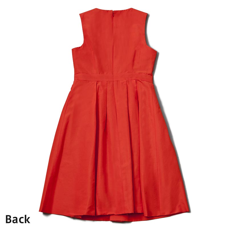 シルクとコットンのミックス素材が涼しさと上品さを醸し出し、ビビッドな色が目がさめるほどの印象を与えるワンピースです。
