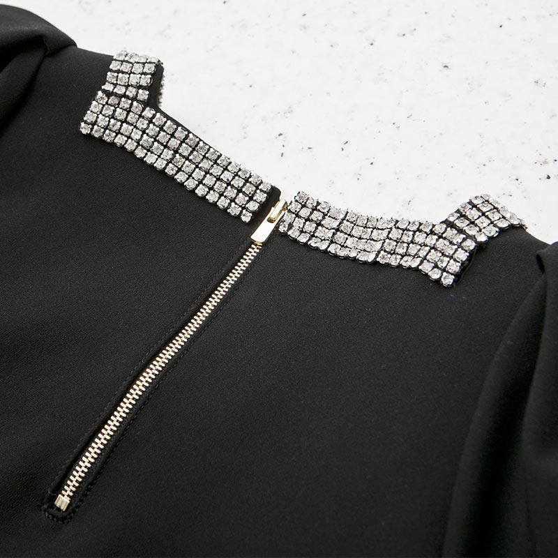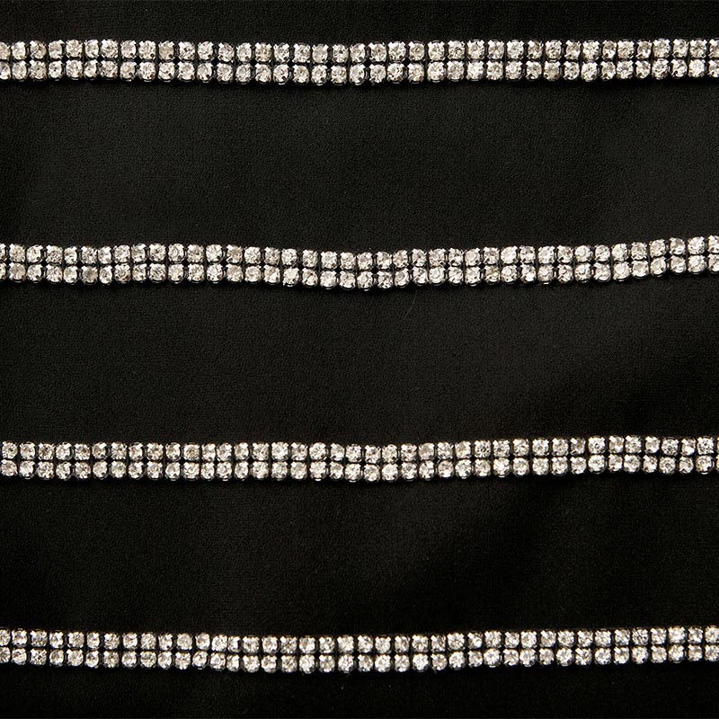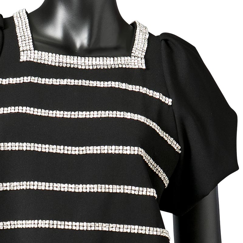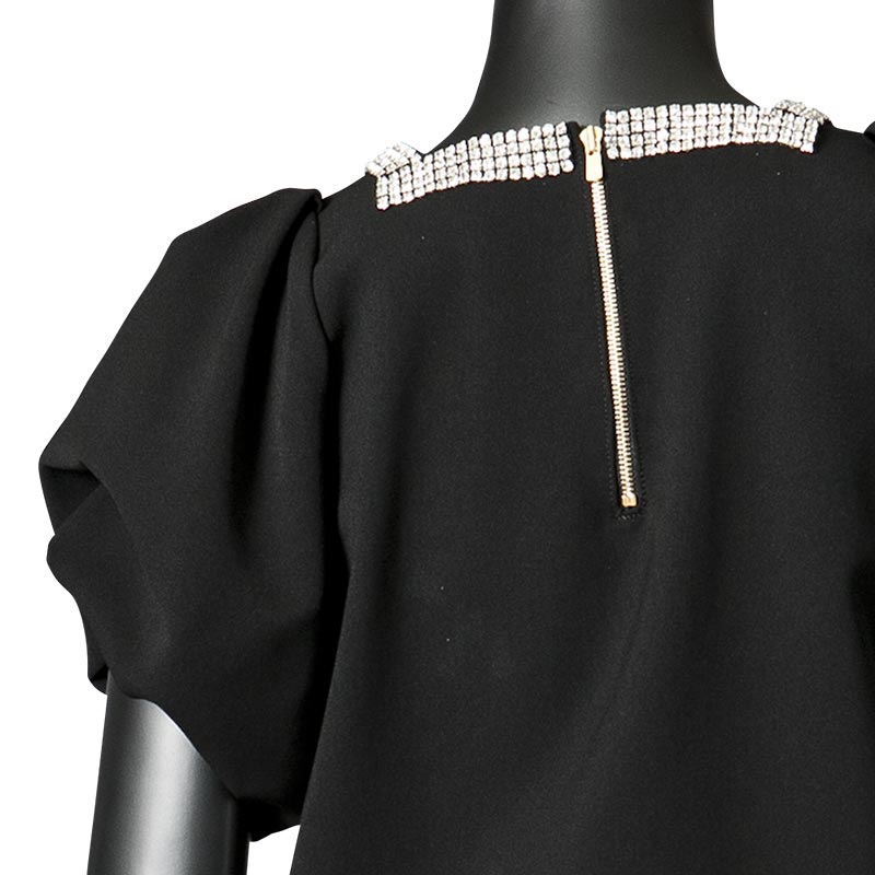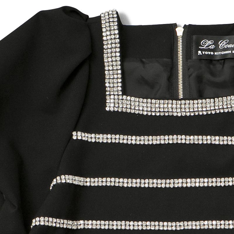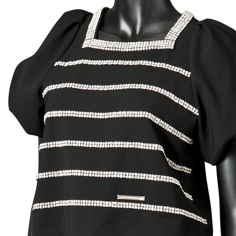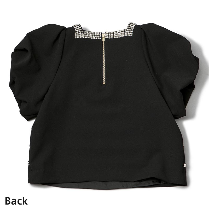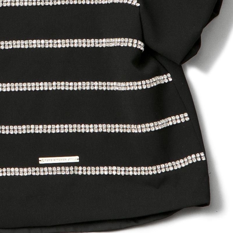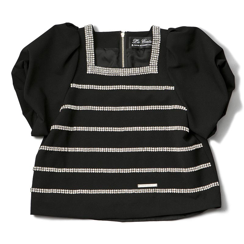 職人の手仕事により1点づつ縫い付けられたボーダー柄はラインストーンを使用。パフスリーブに短かい丈が可愛らしい印象も与えます。ハイウエストのパンツやスカートとのコーディネートをオススメします。