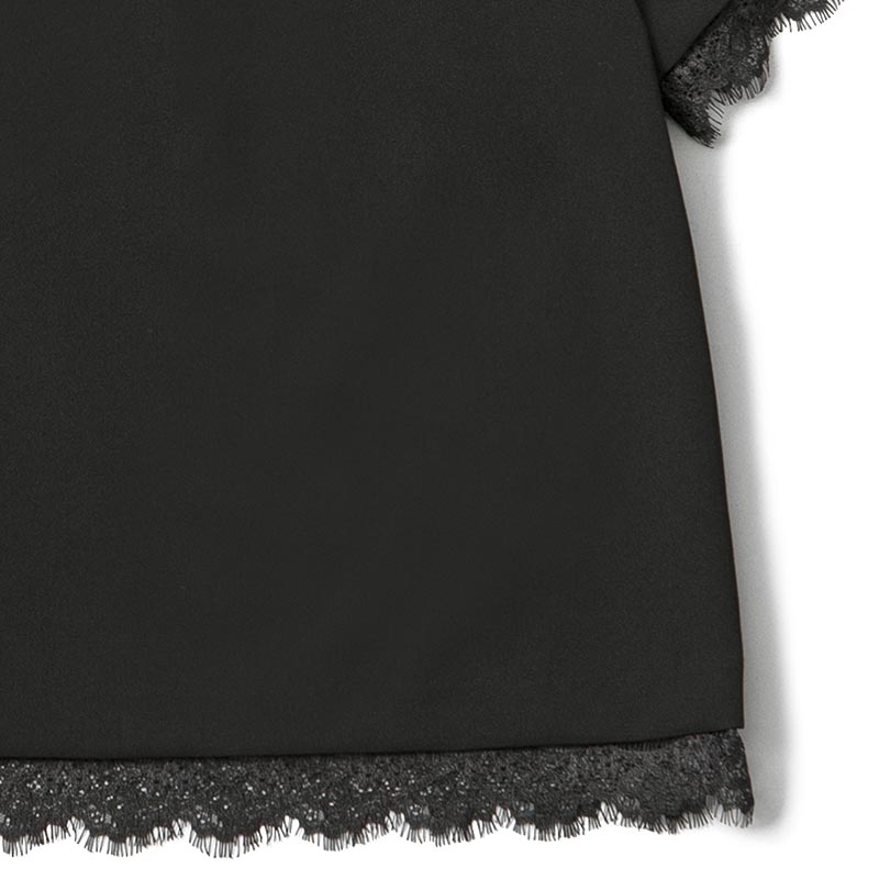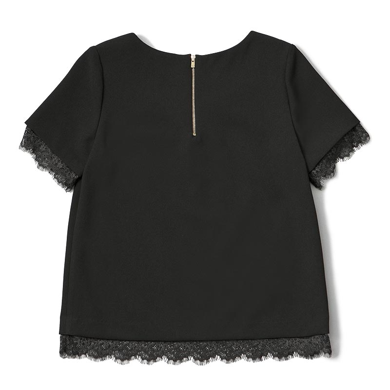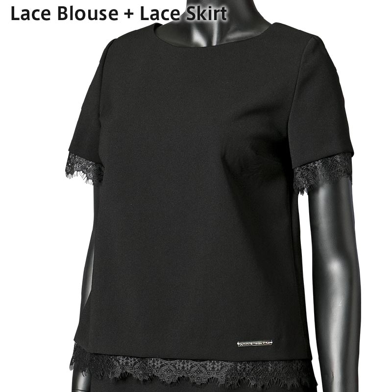 スカラップレースを袖と裾にあしらったシンプルな中に上品さがあるブラウスです。セットアップで使用できるスカートもありオススメです。