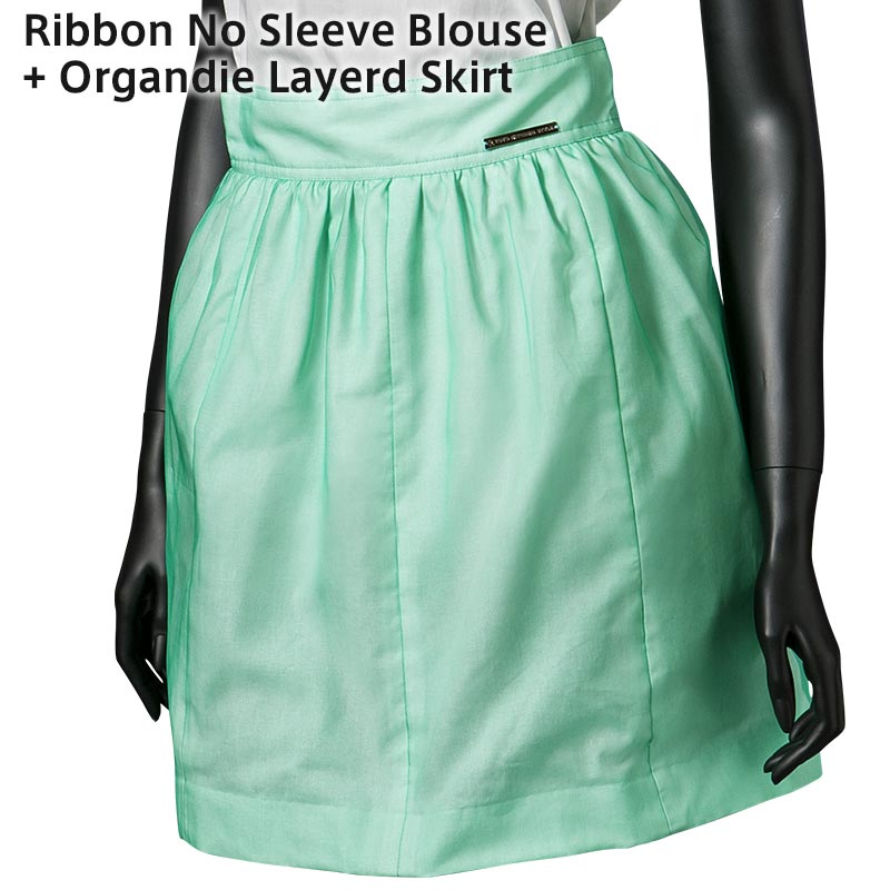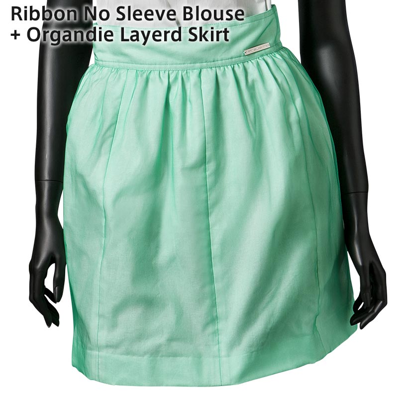シルク100%のオーガンジーの透明感が涼しい印象のスカートです。白い晒しの生地の上にオーガンジーを重ね、見る角度により様々な奥行きのある模様に見えるデザインになっております。カラフルな色展開も楽しいアイテムです。