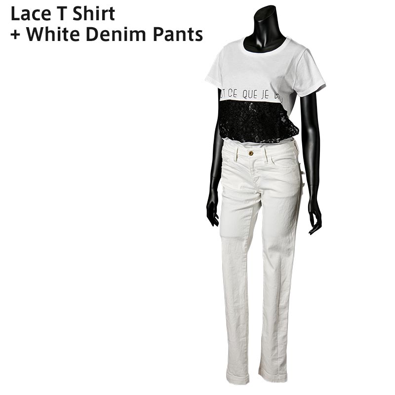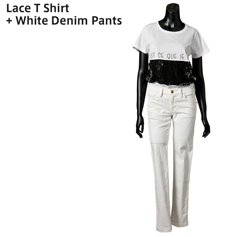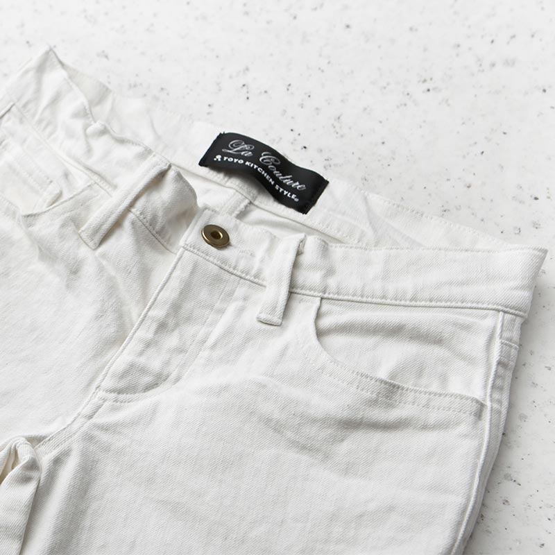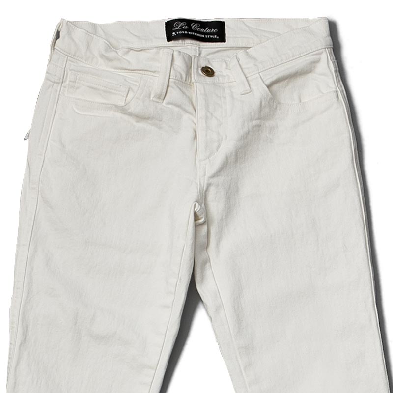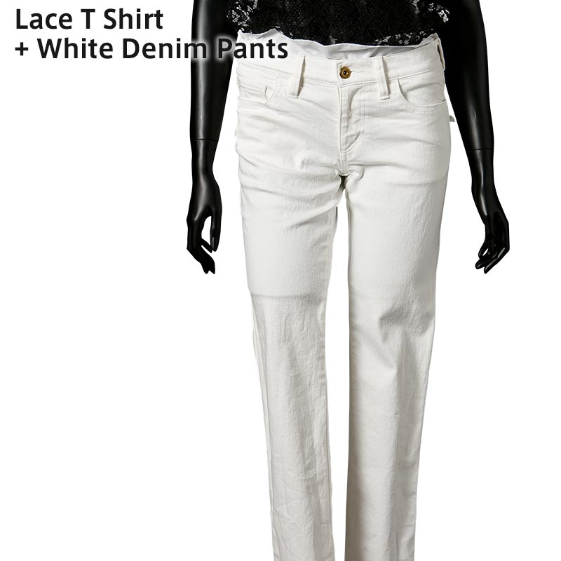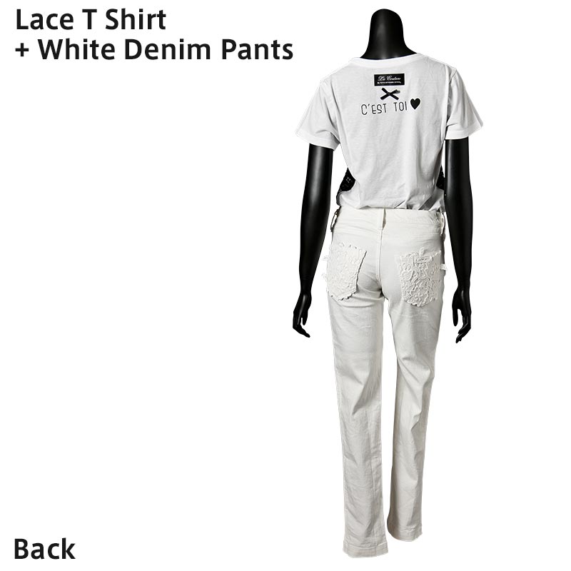 ホワイトスキニーデニムのヒップポケットに大柄のレースをあえてラフに重ねアクセントになっているパンツです。ホワイトジーンズは夏のコーディネートには欠かせない必須アイテムです。