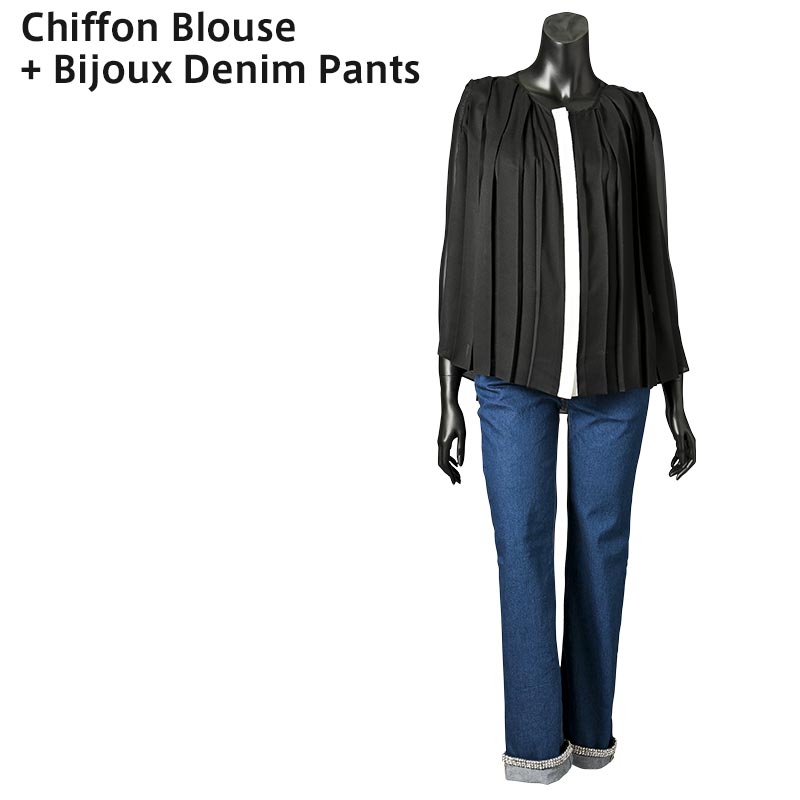 ベルトループと折り返した裾にラインストーンを施したインディゴデニムパンツです。敢えて裾を折り返し8分丈にしています。