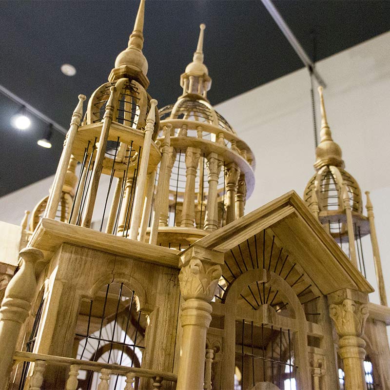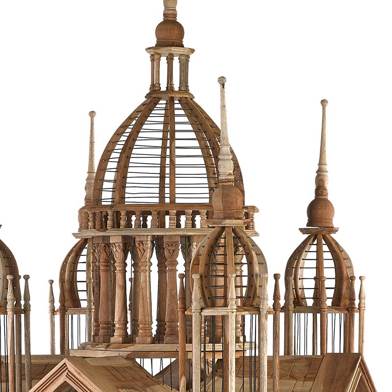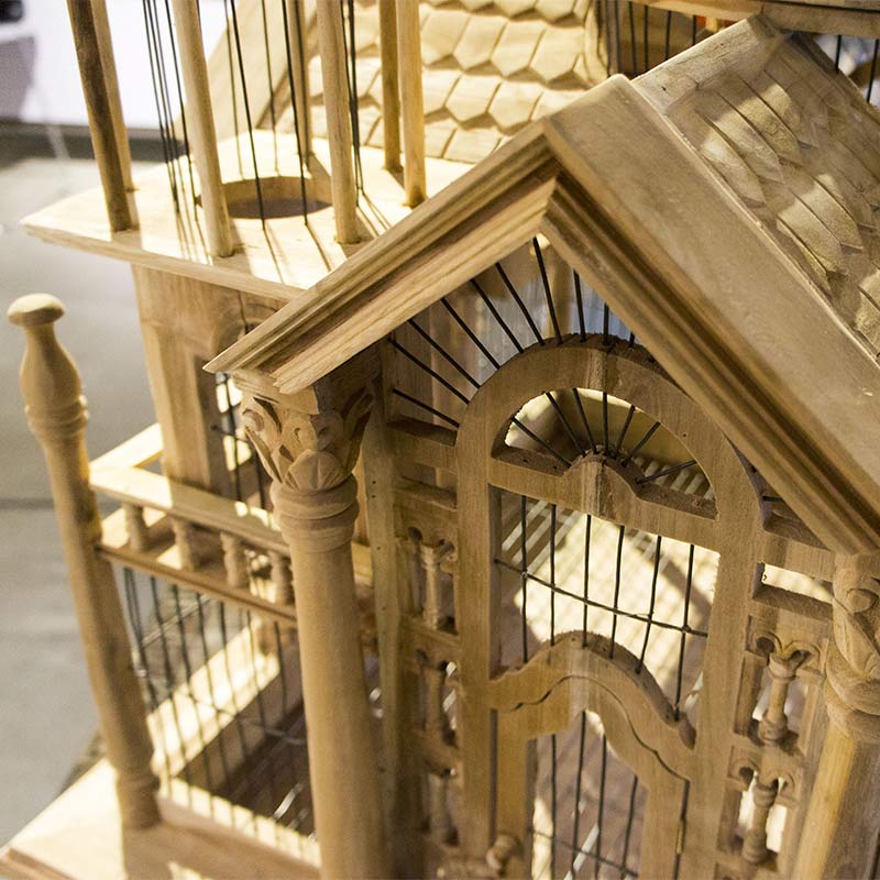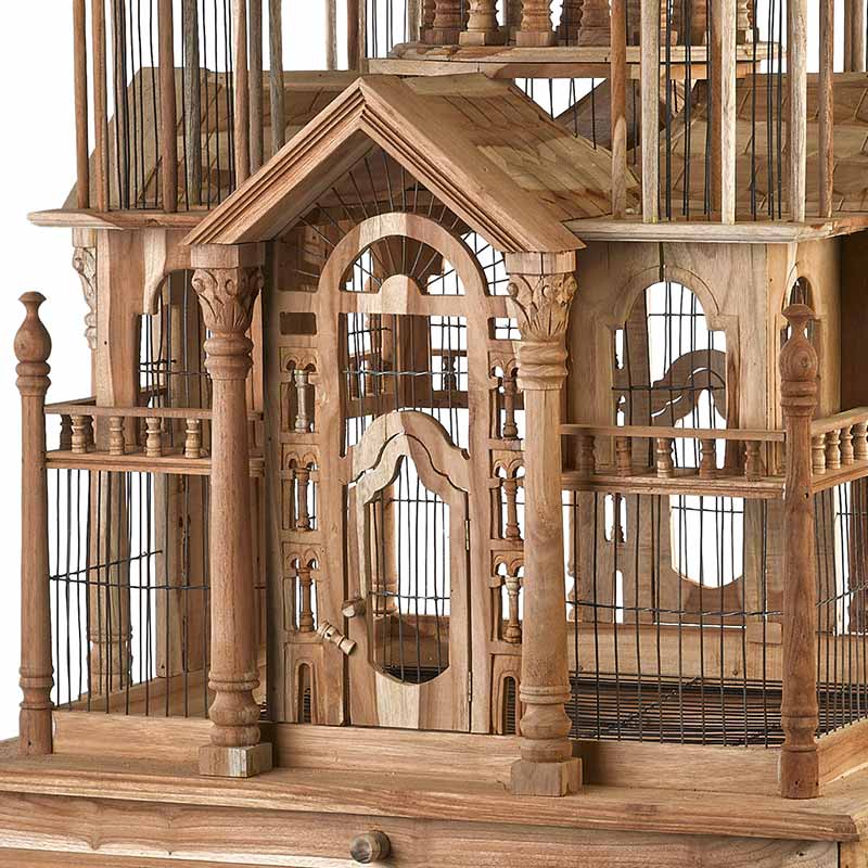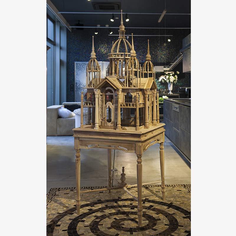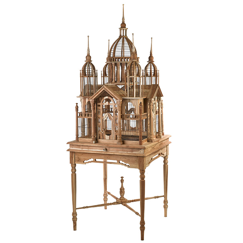 荘厳な聖堂がモチーフでひとつひとつのフレームがスケルトン構造になっており、中の鳥かごが見えるようになっています。