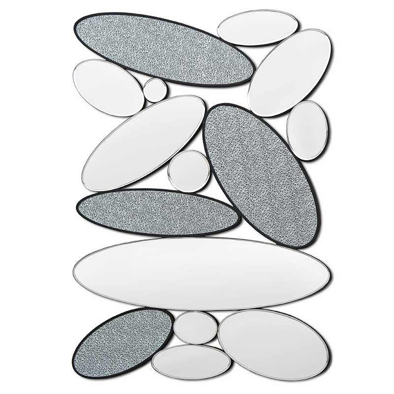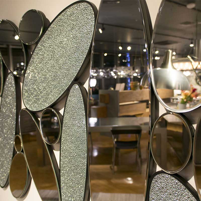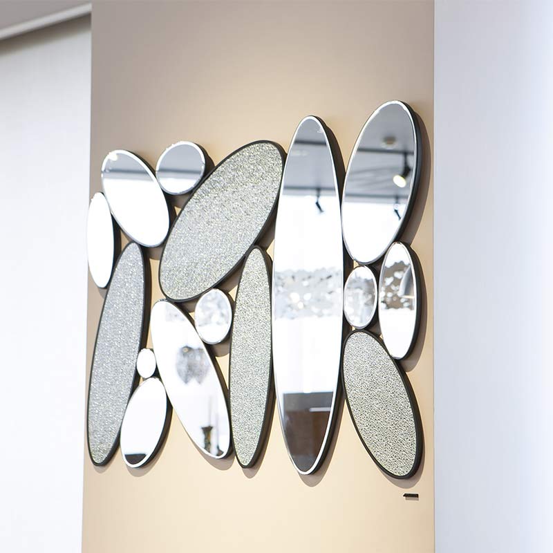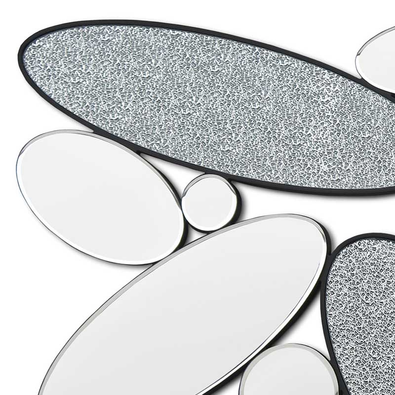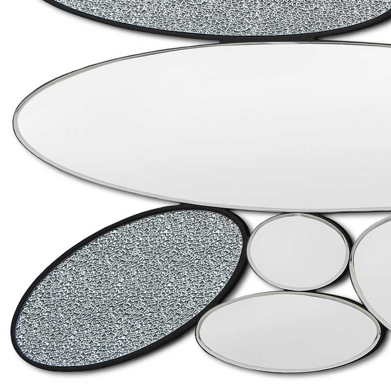 ミラーと凹凸した装飾の2種類の楕円形を組み合わせたウォールミラーです。