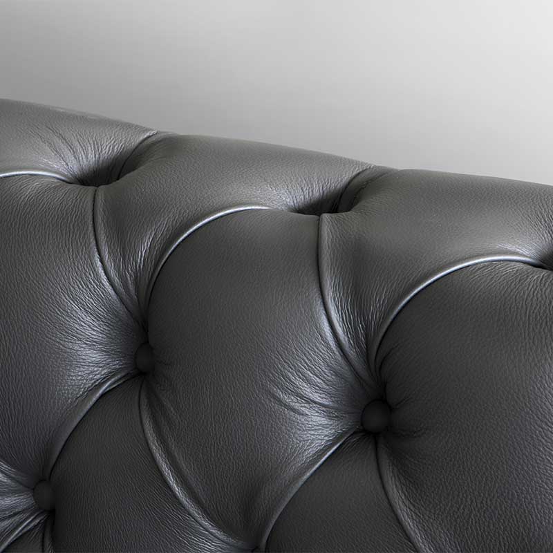 座面は牛革の中で最も強度があり、かつ美しいトップグレインレザーを贅沢に使用。バックやアームレストには柔らかなスプリットレザーを使用しています。