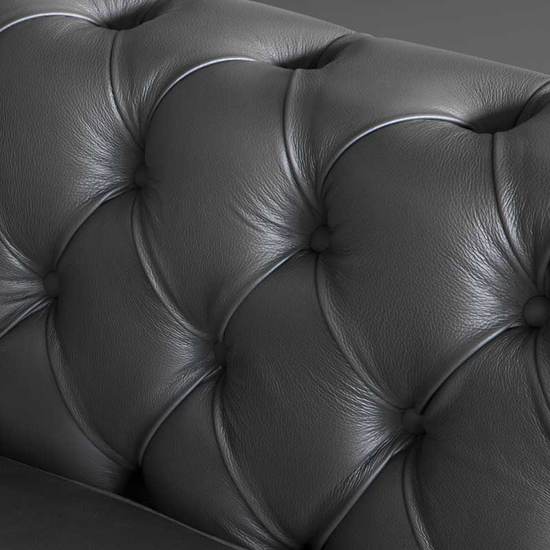 座面は牛革の中で最も強度があり、かつ美しいトップグレインレザーを贅沢に使用。バックやアームレストには柔らかなスプリットレザーを使用しています。