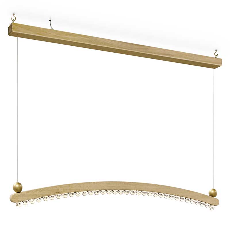アーチ状の木製フレームに、アクリルビーズで覆われたLED光源が規則正しく配列された照明。