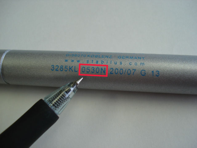 該当ステイの本体円筒部分に、「0○○○N」という記号記載があります。(○は数字)記載位置については、商品画像3枚目をご参照ください。