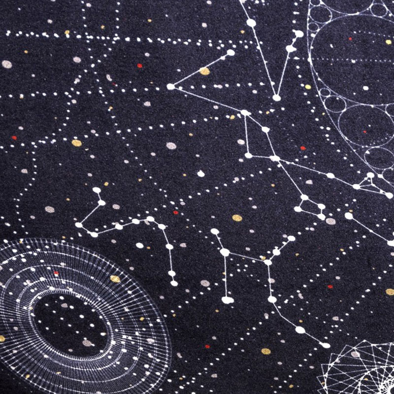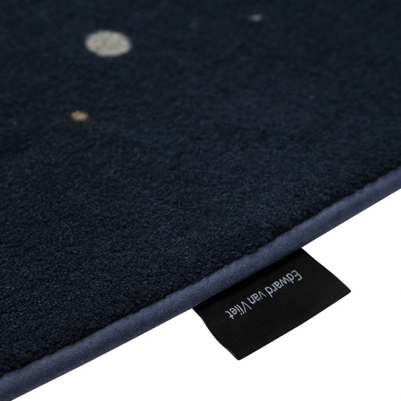 エドワード・ヴァン・フリートがデザインしたミッドナイト・スカイ・ブルーの円形カーペット「セレシャル|Celestial」。