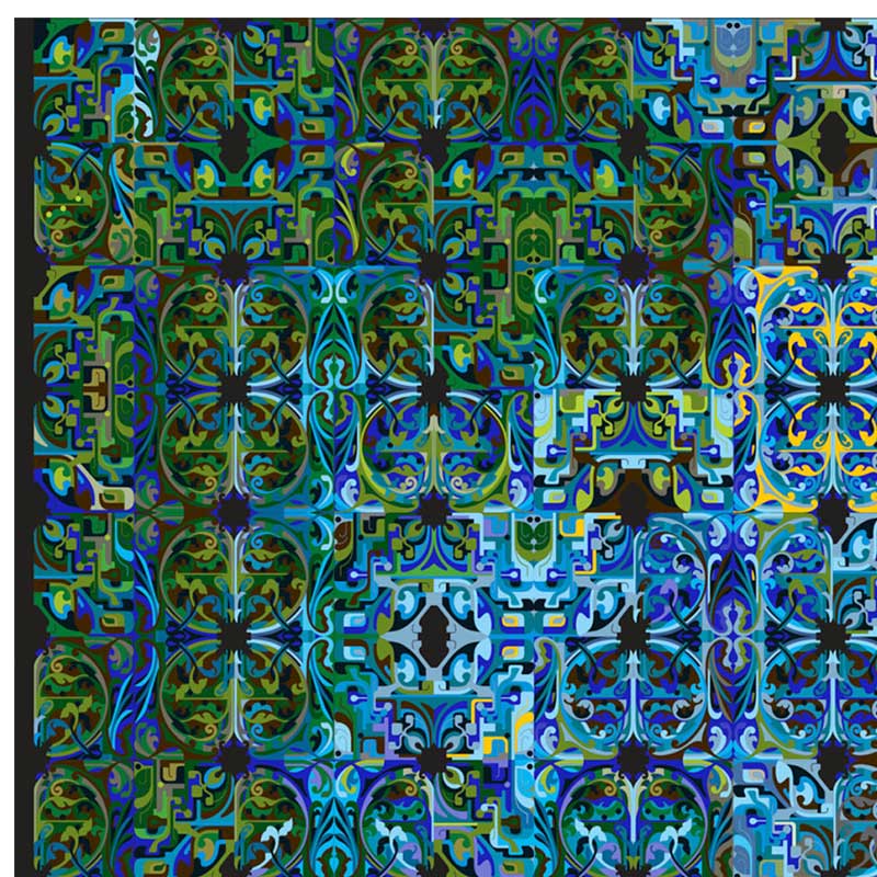 緑と青が印象的なカーペット