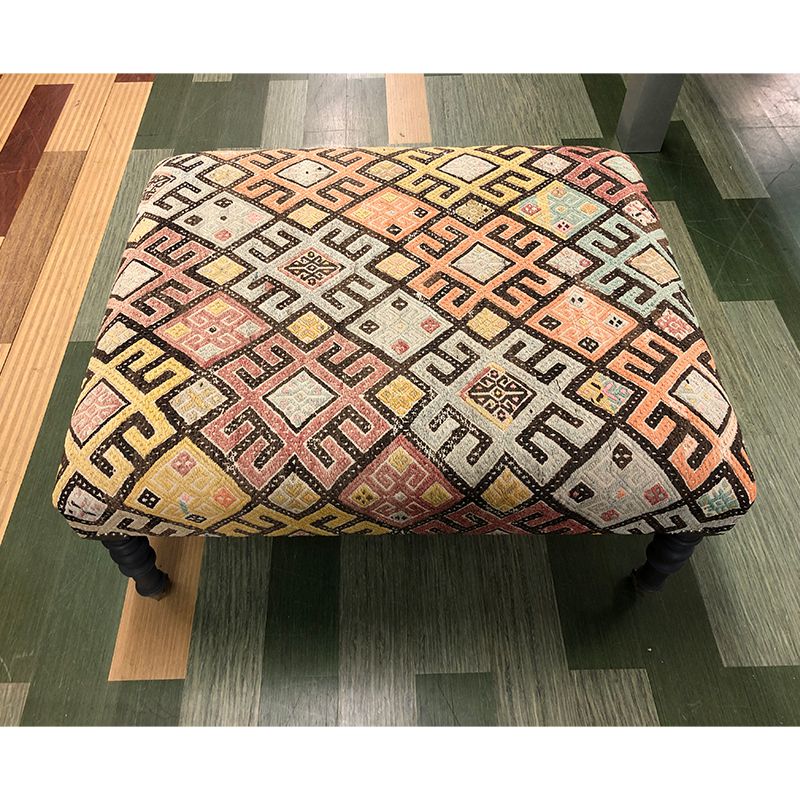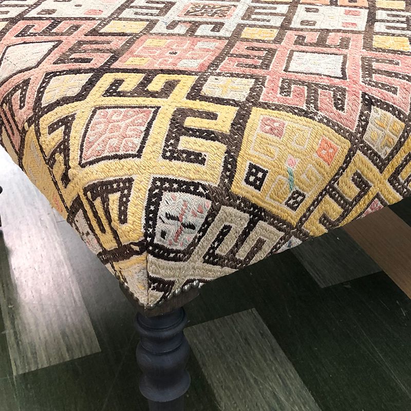 花をモチーフにしたキリム。砂漠などの乾燥地帯に住む民が憧れる花の咲く庭園を文様にしています。両サイドから座ったり、あぐらをかいたりとゆったりと過ごすためのアイテムです。