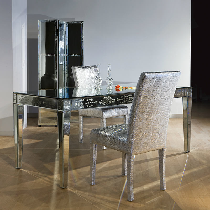 鏡をまとい、全く新しい印象を生むムーブルイタリ。鏡をまとうことで周囲のテイストを映し出し、空間に溶け込みます。一枚一枚ハンドメイドで模様を描いた、味わい豊かな装飾が魅力です。