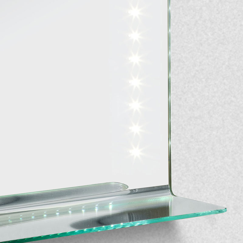 ミラーと一体になった棚が特徴のミラー。ちょっとした小物が置けます。