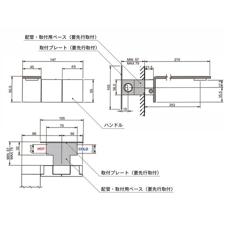 取付穴:W7.5/H36.5/D5.5-7.5cm